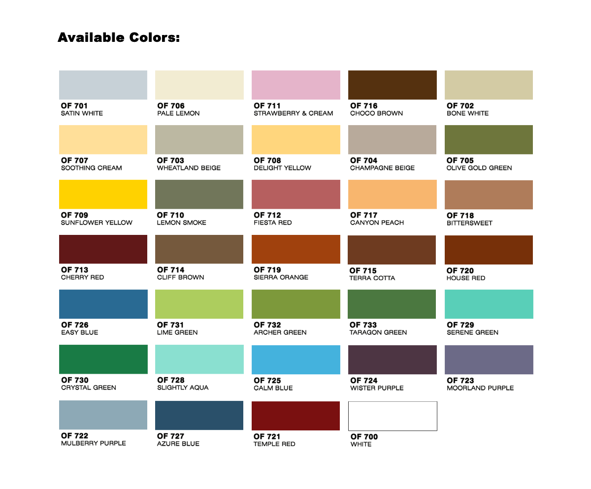 *Disclaimer: The colors displayed in this section may not precisely reflect paint colors because of technical limitations. Please send us an inquiry on our Contact us page for assistance.*