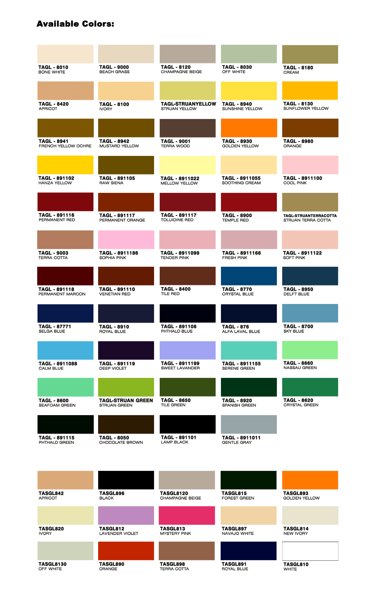 *Disclaimer: The colors displayed in this section may not precisely reflect paint colors because of technical limitations. Please send us an inquiry on our Contact us page for assistance.*