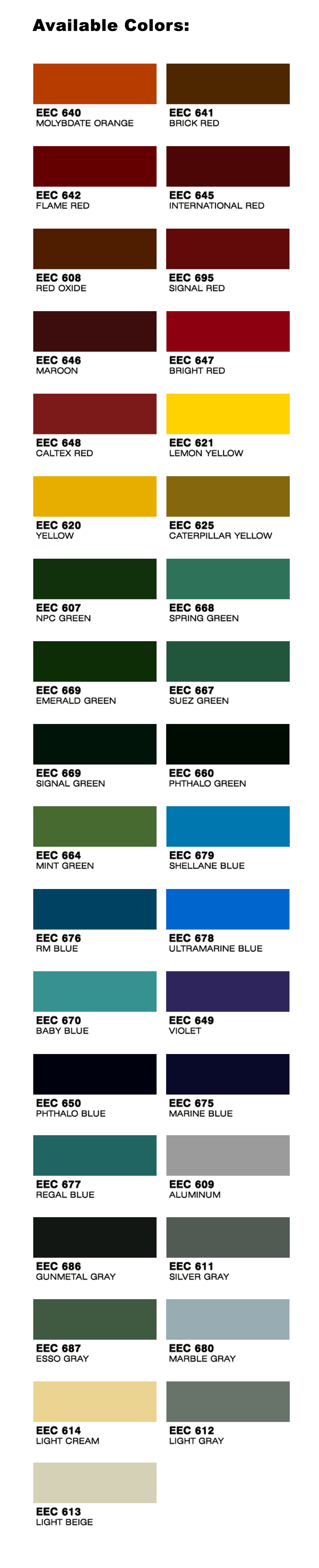 *Disclaimer: The colors displayed in this section may not precisely reflect paint colors because of technical limitations. Please send us an inquiry on our Contact us page for assistance.*